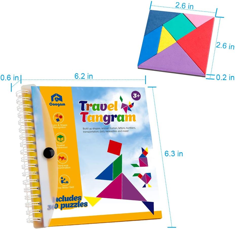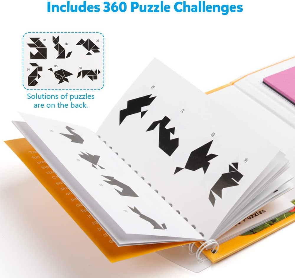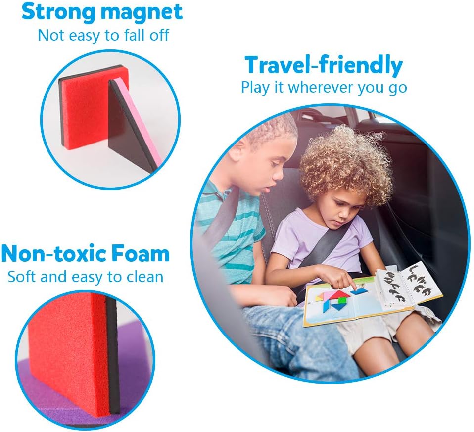 “ألعاب الألغاز التنغرام المغناطيسي من كوغام – كتاب أنماط الكتل للطريق، لعبة قطع الصور التحدي STEM مع حل للأطفال والكبار – هدية تعليمية للذكاء، ألغاز الدماغ، 360 نمطًا”