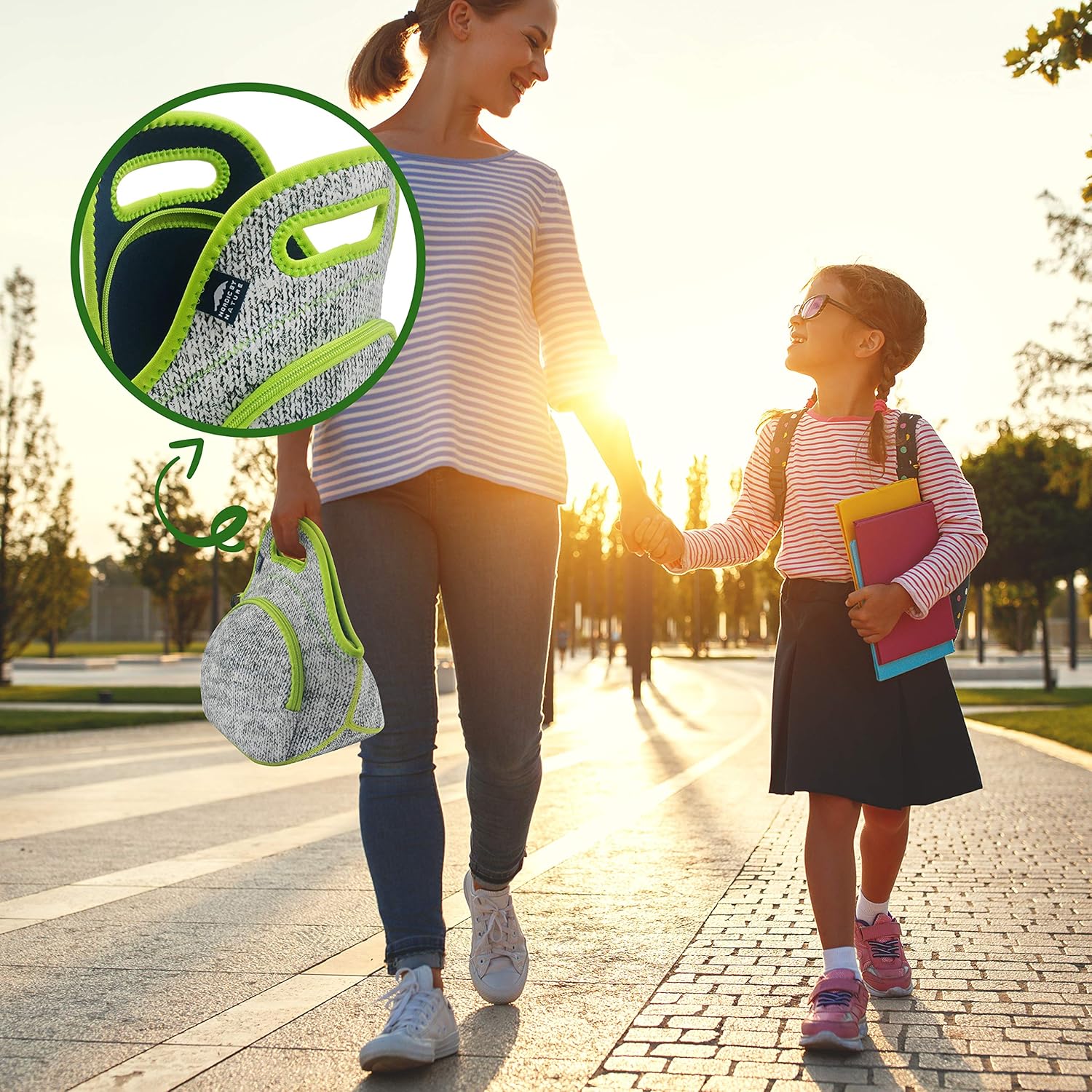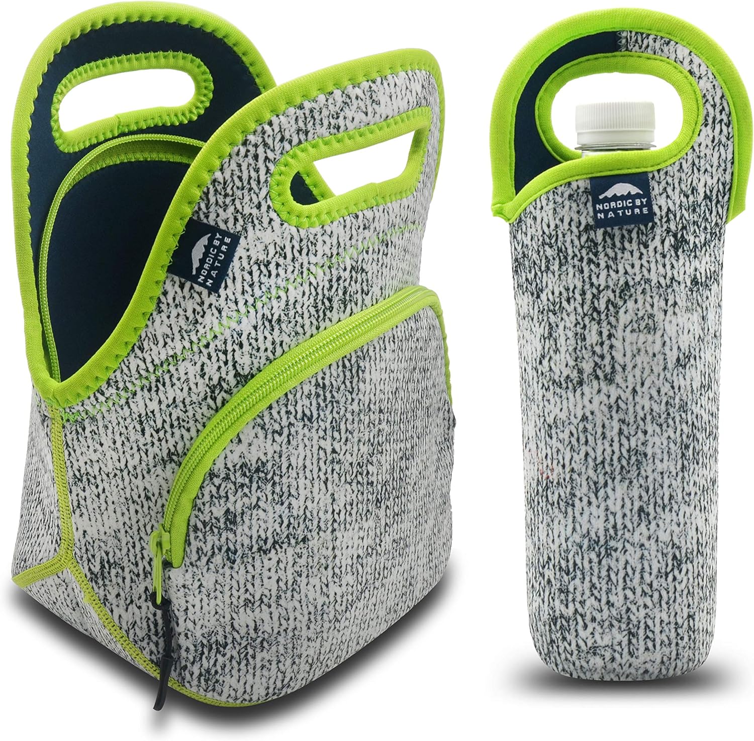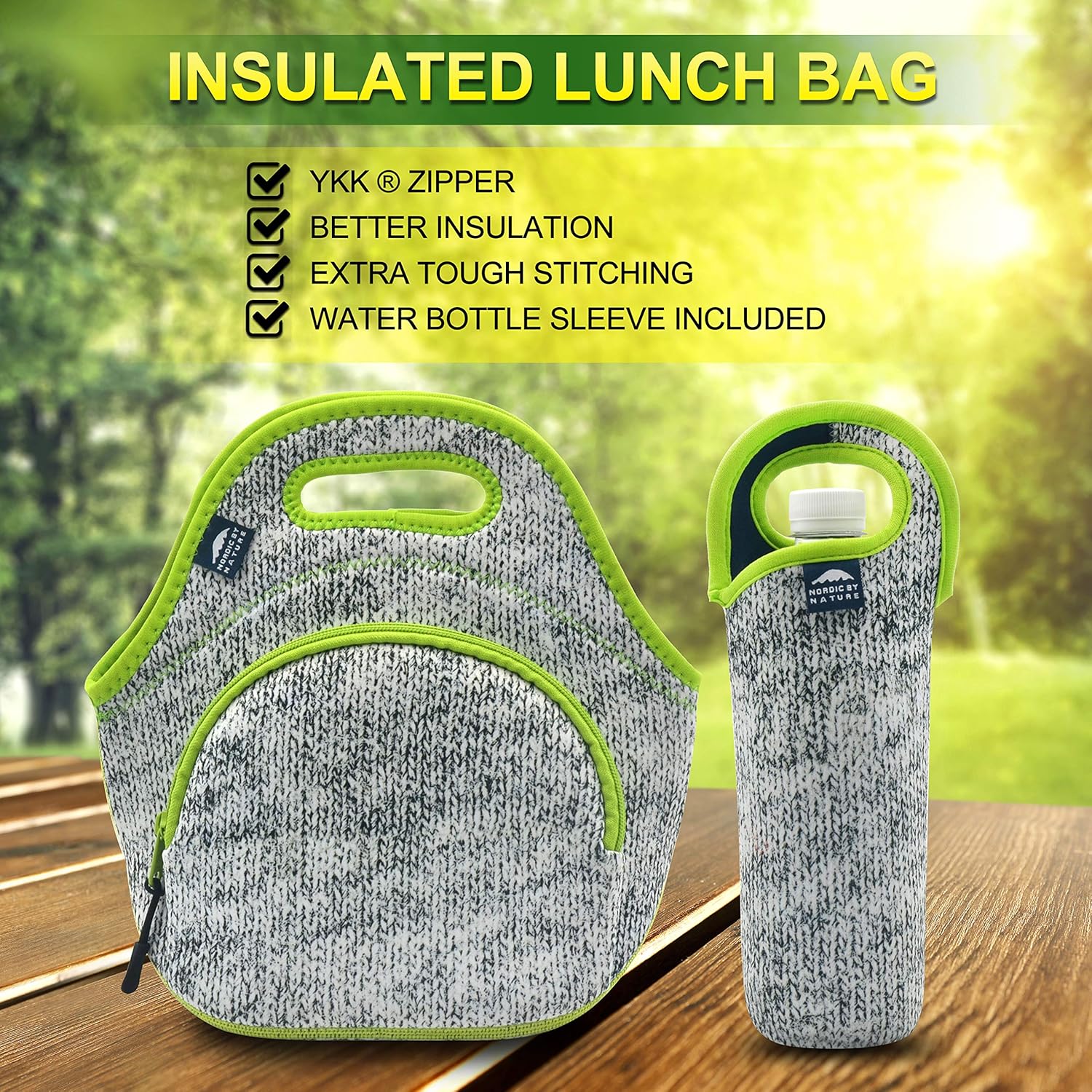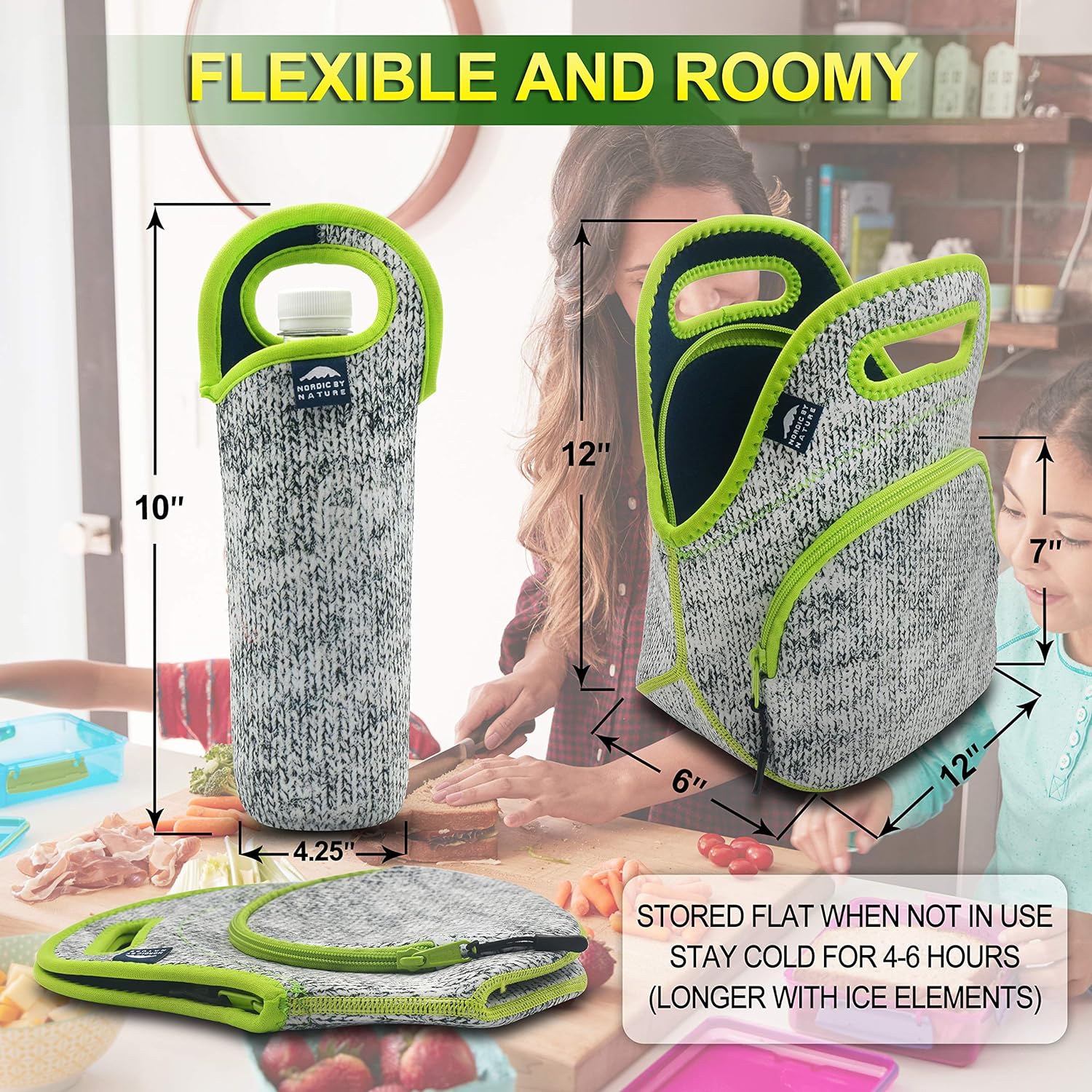 “حقيبة غداء من النيوبرين للنساء والرجال، حقيبة غداء معزولة بسماكة إضافية مع حافظة زجاجة ماء، متينة وقابلة لإعادة الاستخدام وقابلة للغسيل في الماكينة، رمادي/نيون”